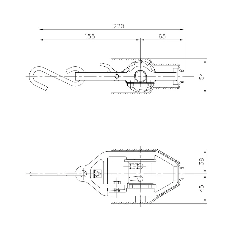 Dispositivo di tensionamento in acciaio inox AISI-316 per aste di sughero