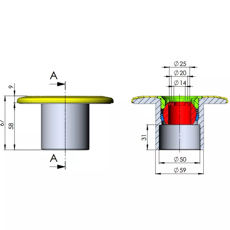 - Per incollaggio esterno Ø 63 mm, PN 6 e interno Ø 50 mm