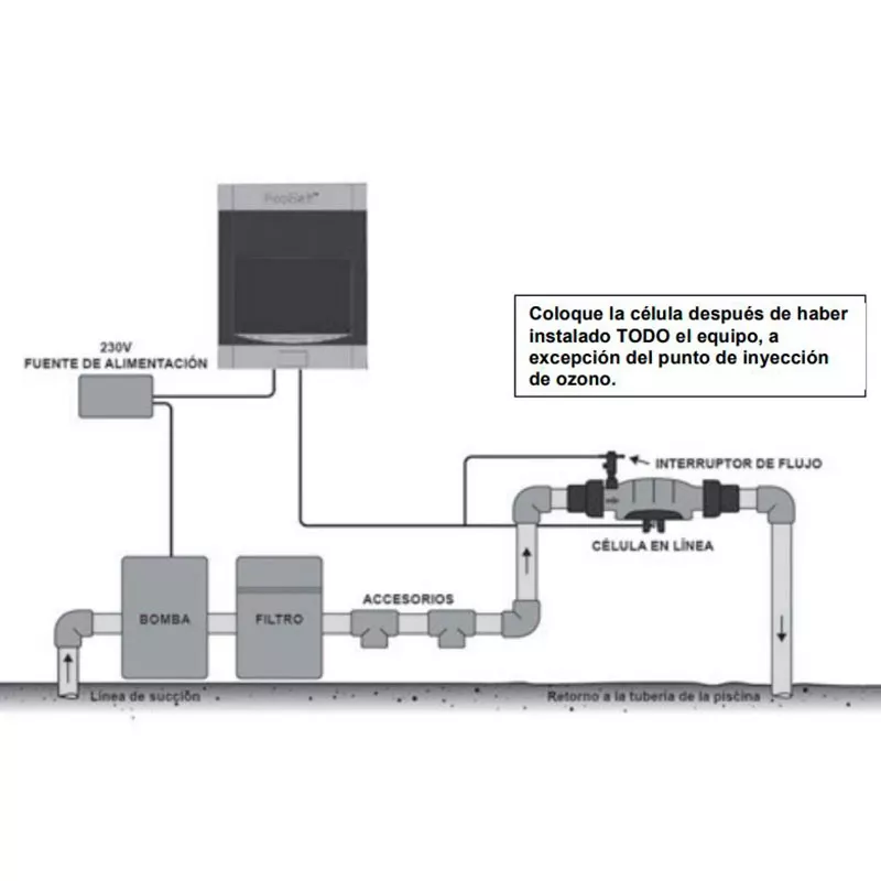 EcoSalt è dotato di un flussostato per garantire la sicurezza e la protezione in caso di flusso basso o nullo. Inoltre, incorpora una cella in linea compatta, trasparente e ad alte prestazioni.