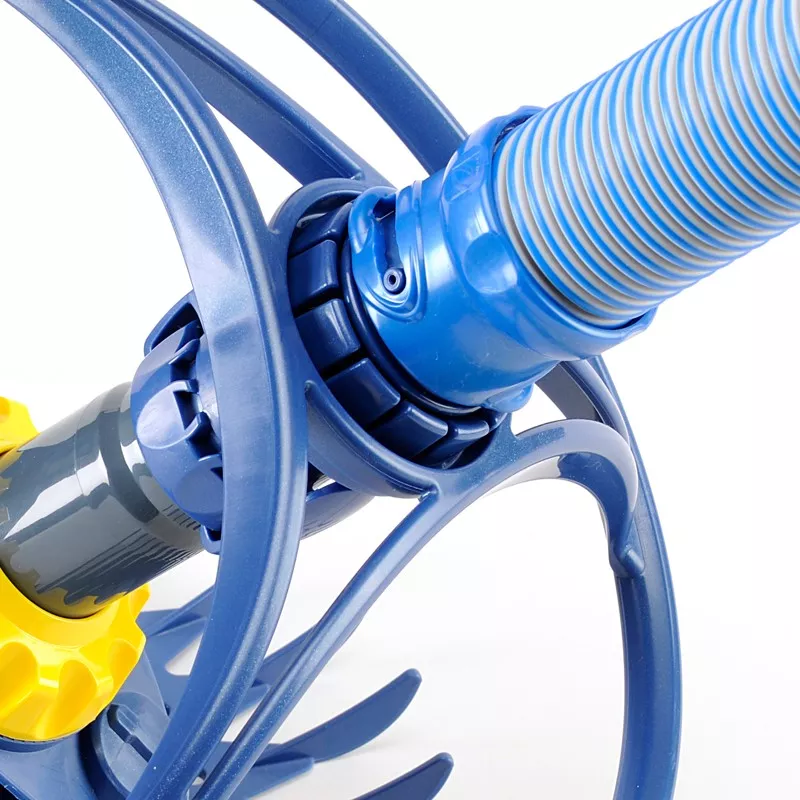 Pulitore idraulico ad aspirazione che si collega direttamente all'ingresso del pulitore della piscina o allo skimmer senza alcuna attrezzatura aggiuntiva.