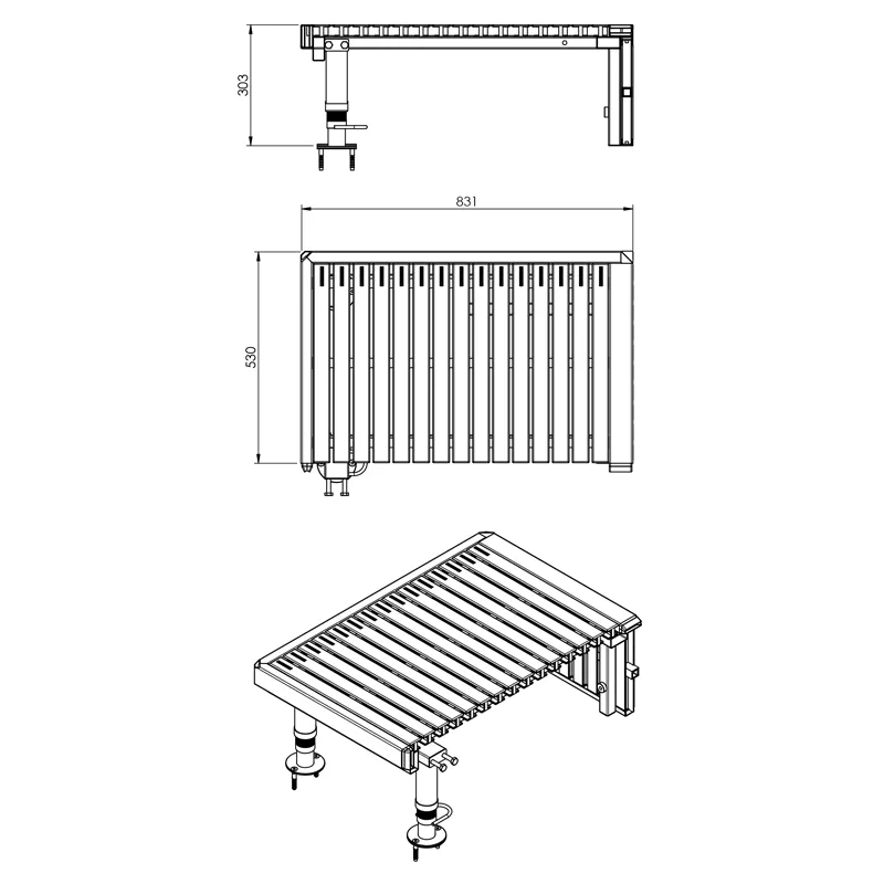 AstralPool ha creato una piattaforma su cui fissare i podi di uscita. Il prodotto è costituito da una base in AISI-304 e da griglie in plastica.