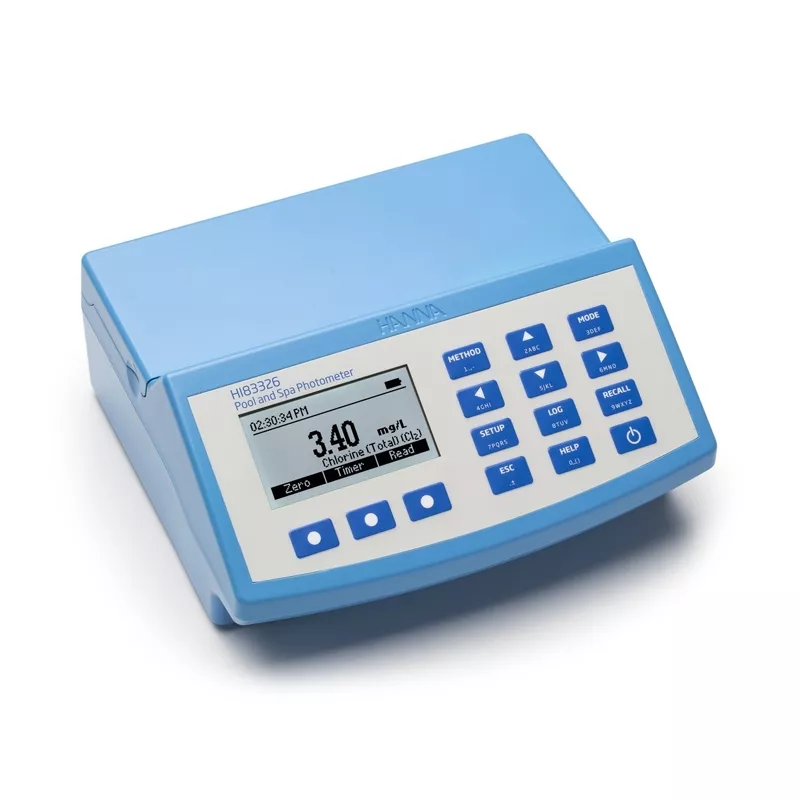 Meting van 13 parameters:- Absorbantie - Cyanuurzuur - Alkaliteit - Broom - Vrij chloor - Totaal chloor - Koper (hoog bereik) - Calciumhardheid - IJzer (hoog bereik) - IJzer (laag bereik) - Nitraat - Ozon - pH- Berekening van de Langelier Index om de waterbalans te voorspellen