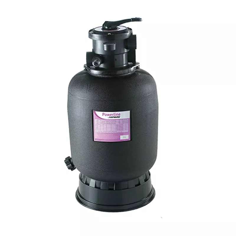 - Zandfilter Hayward Powerline met bovenuitlaat voor filtratie van zwembadwater.