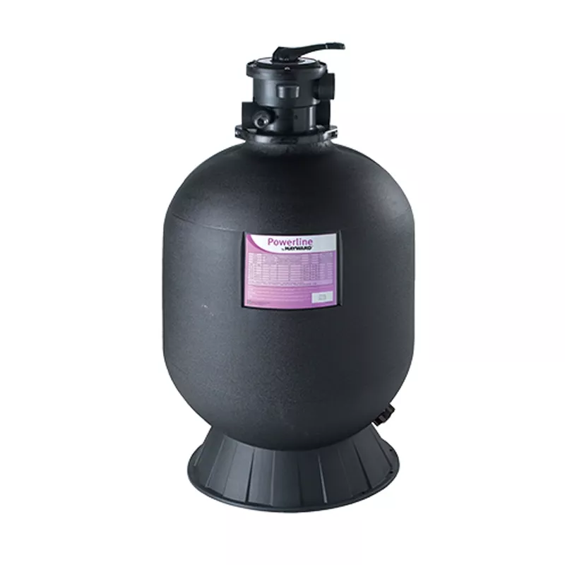 - Zandfilter Hayward Powerline met bovenuitlaat voor filtratie van zwembadwater.