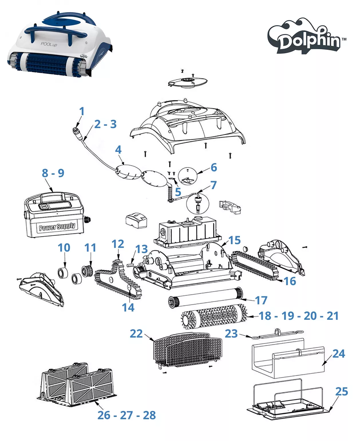 Onderdelen voor zwembadreiniger Dolphin Chassis