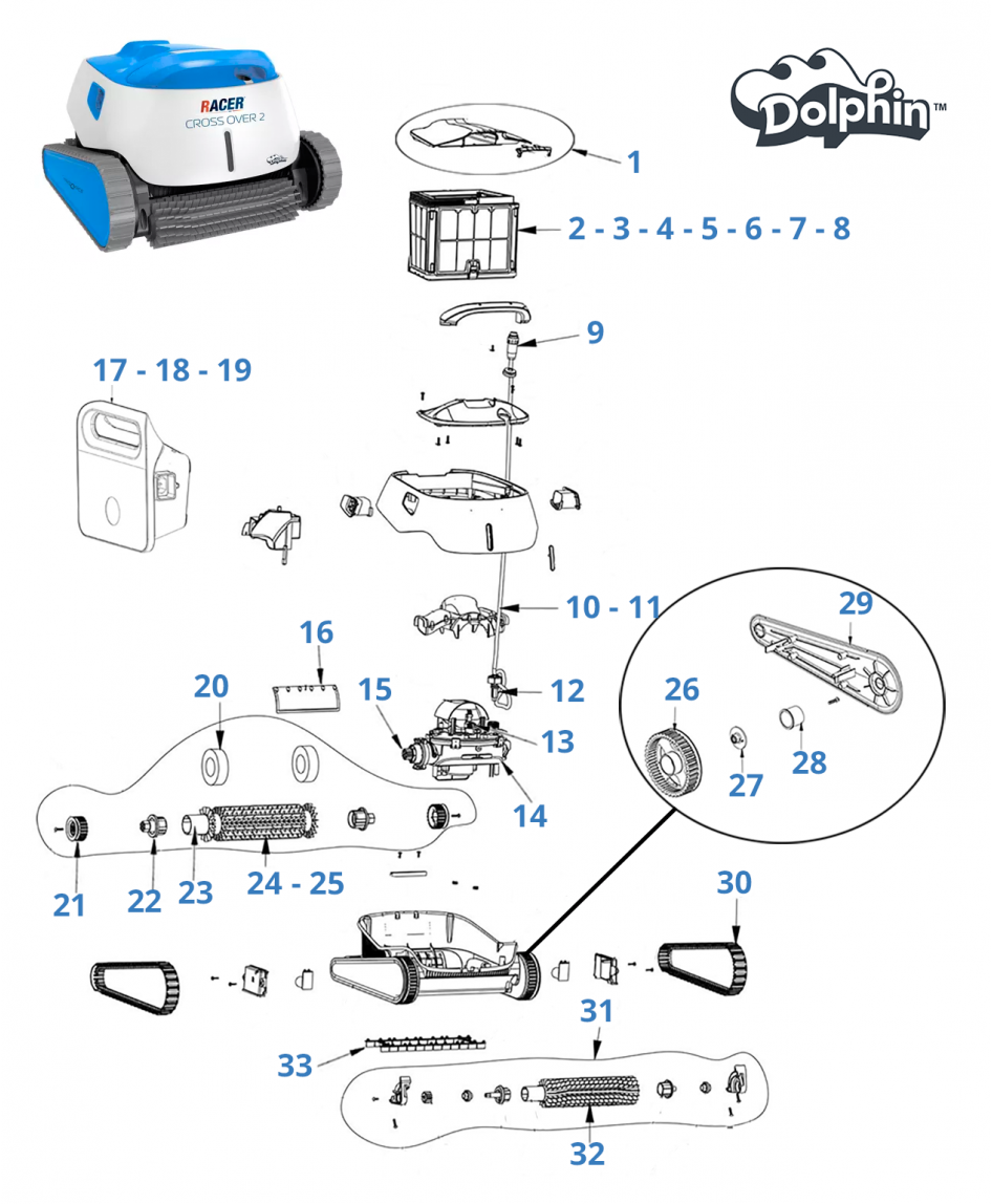 Onderdelen voor Dolphin Racer Cross Over 2
