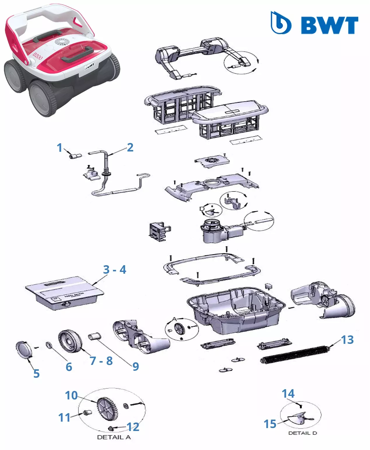Onderdelen voor zwembadreinigers BWT