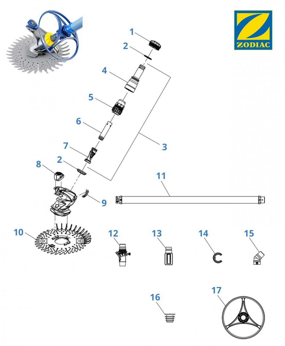 Vervanging zwembadreiniger Zodiac Binnenzwembadreinigingsset