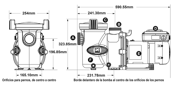 DN50 en DN63 mm (inlaat en uitlaat met 2" schroefdraad) - Inclusief 63/50 mm unie-eindstukken- Uitgangsvermogen: 2 HP - Uitgangsvermogen: 1,50 KW - Maximale watertemperatuur: 35ºC - Geschikt voor alle soorten zwembaden- Garantie: 3 jaar