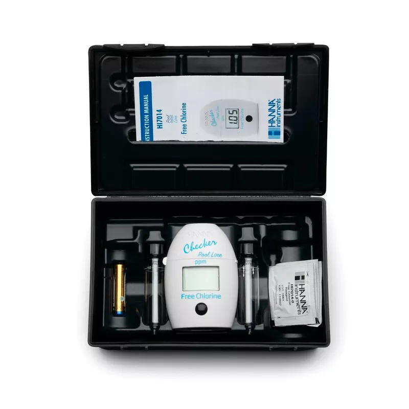 De HANNA HI7014 vrijchlooranalysator is een digitale kleurmeter voor chloortests. Met de HI7014 chloormeter kunt u eenvoudig, nauwkeurig en kosteneffectief vrij chloor meten. Vrij chloor is de actieve vorm van chloor die wordt gebruikt om drinkwater, zwembaden en spa's te desinfecteren.