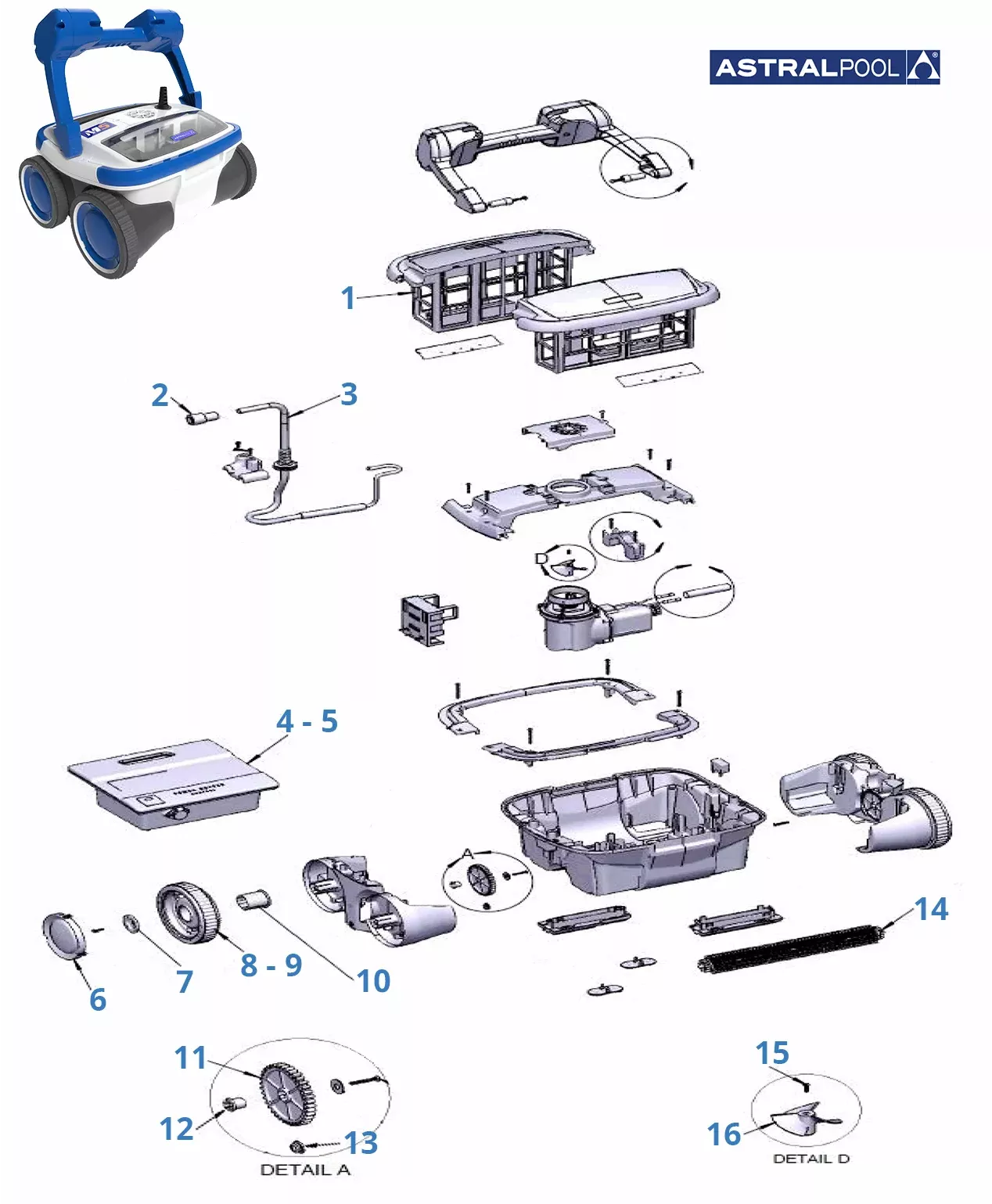 Onderdelen voor zwembadreiniger Astralpool Sophia wielbus