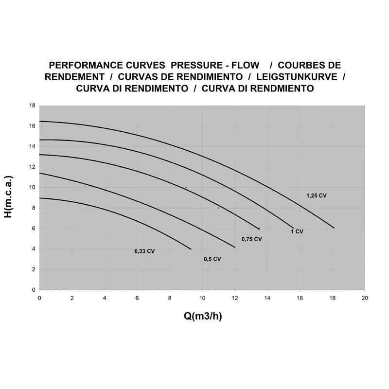 - Debiet m3/h (bij 10 mca)