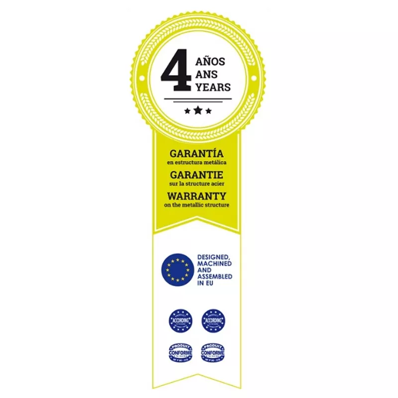 4 JAAR GARANTIE OP DE METALEN STRUCTUUR.