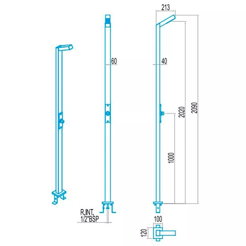 Douche voor openbaar gebruik met 1 douchekop en 1 getimede knop. De toepassing van getimede technologie voorkomt onnodig waterverbruik.