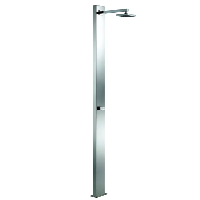 Douchekop in gepolijst roestvrij staal AISI-304 met 1 vierkante hoofddouche (150mmx150mm) en een doorstroombegrenzer.