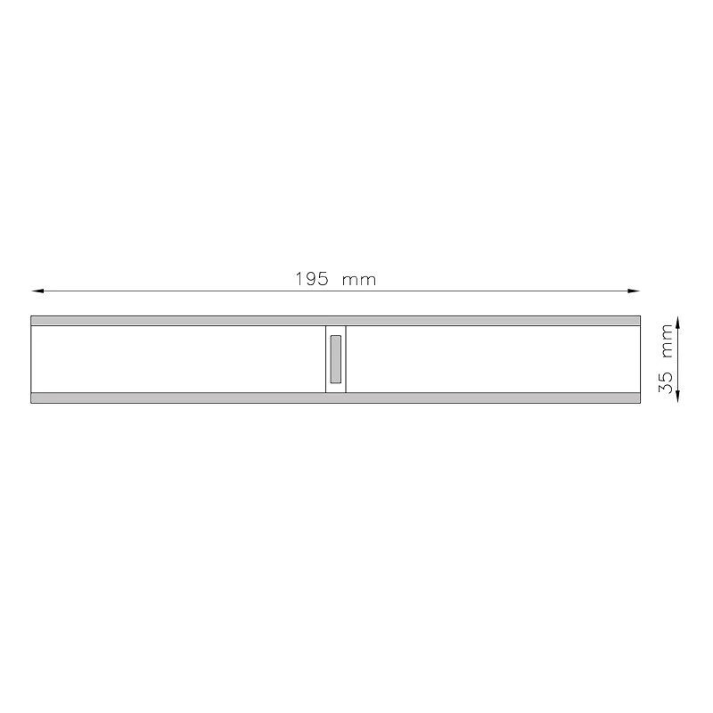 De afmetingen zijn: hoogte 35 mm en breedte 195 mm.