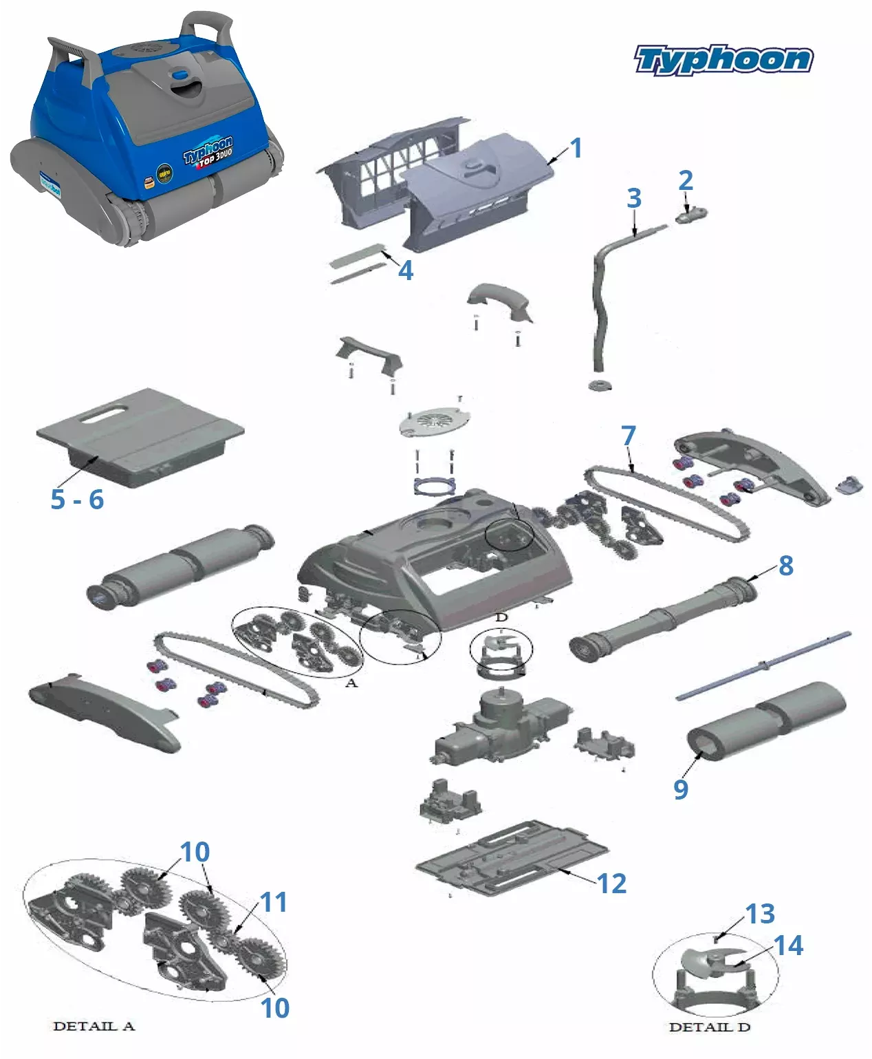 Onderdelen voor zwembadreinigers Typhoon