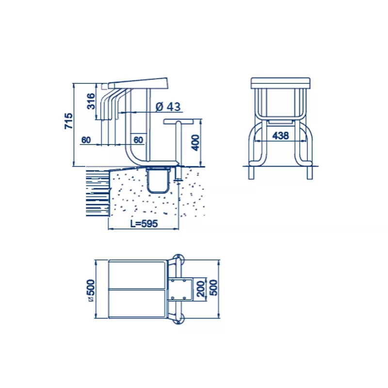 - Hoogte van 700 mm en platform van 500 X 500 mm verstelbaar