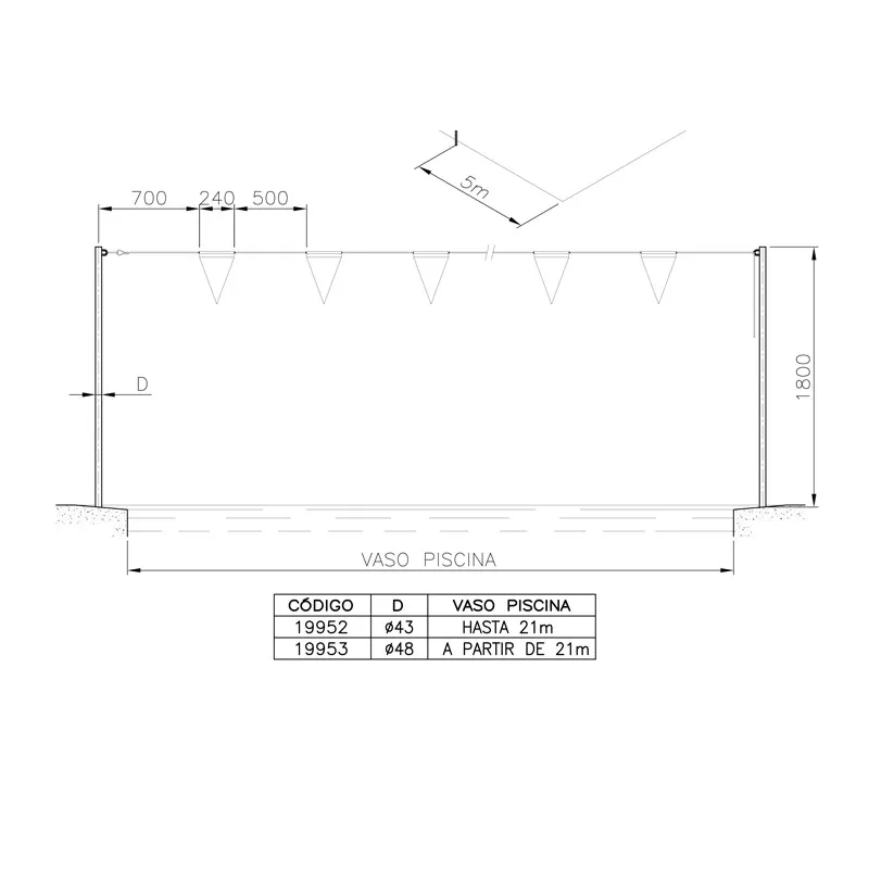 - Samengesteld uit 4 palen in roestvrij staal. AISI-316 en 1,8 m. hoog.