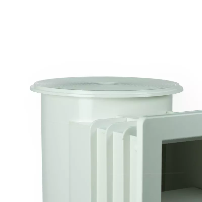 - Fabricada em ABS branco com tratamento UV nas partes não enterradas