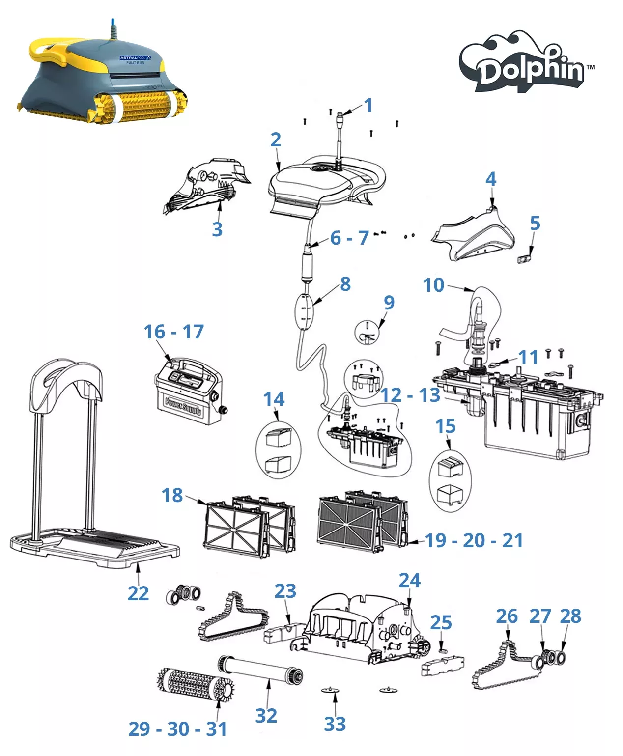 Peças de substituição para aspirador de piscinas Dolphin Chassis