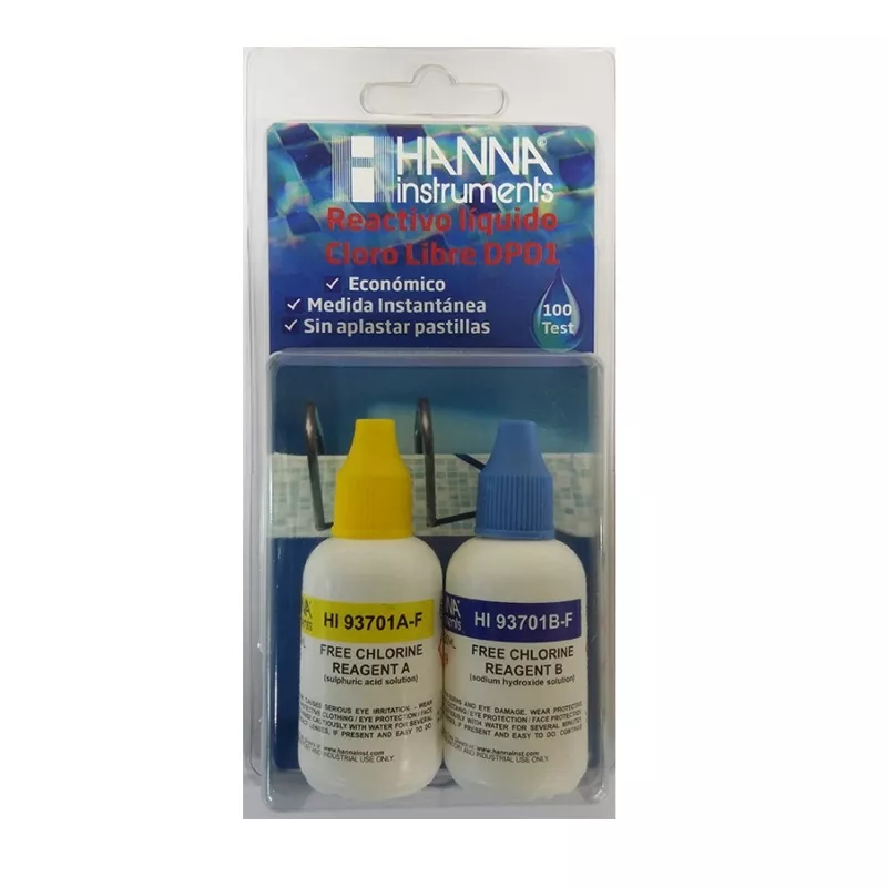 Reagente líquido para análise do cloro livre - 100 testes (1A+1B) para analisadores e fotómetros Hanna.