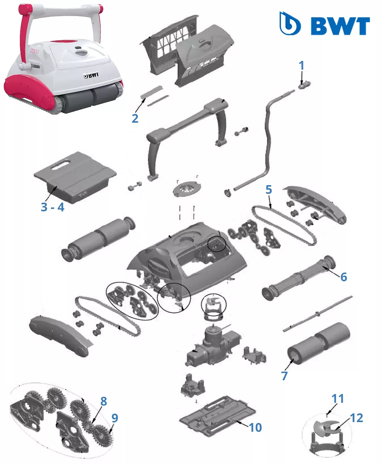 Aquatron Peças de substituição para aspirador de piscinas Roda dentada lateral pequena
