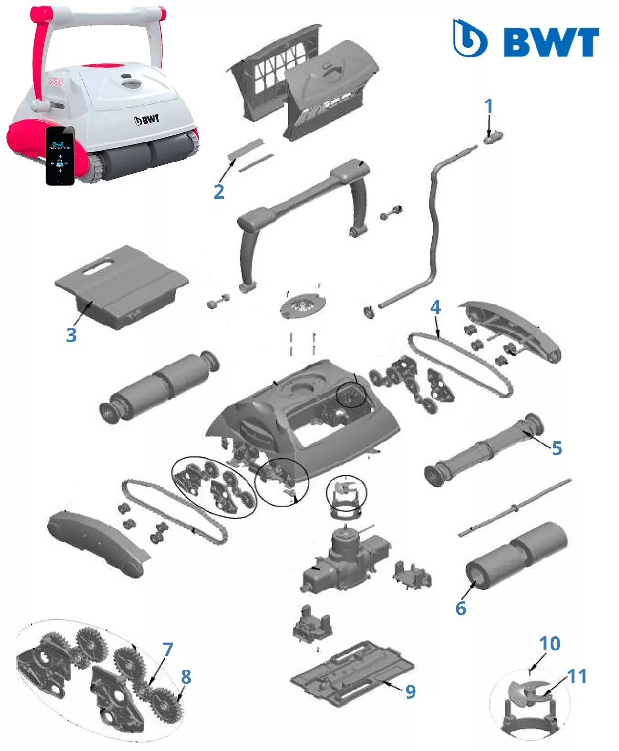 Aquatron Peças de substituição para aspirador de piscinas Roda dentada lateral pequena