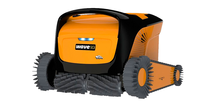 Dolphin O aspirador de piscinas Wave 90i permite uma limpeza fiável, prática e económica da piscina. O seu método de filtração fiável em todas as condições da piscina e a escovagem ativa em todas as superfícies optimizam a higiene da piscina.
