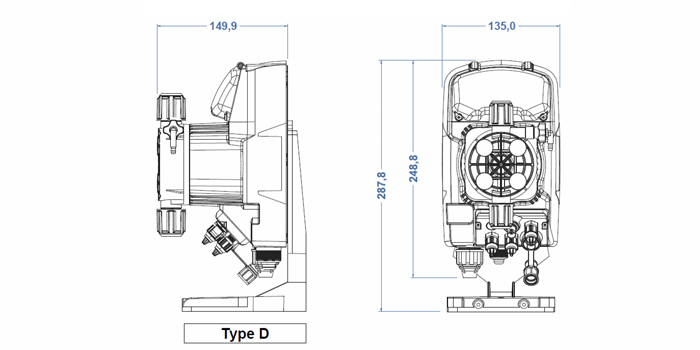As bombas doseadoras digitais da série Acqua Dos com caudal constante podem ser reguladas manualmente através de um teclado montado no painel frontal, que mostra o caudal medido em impulsos/minuto no visor.