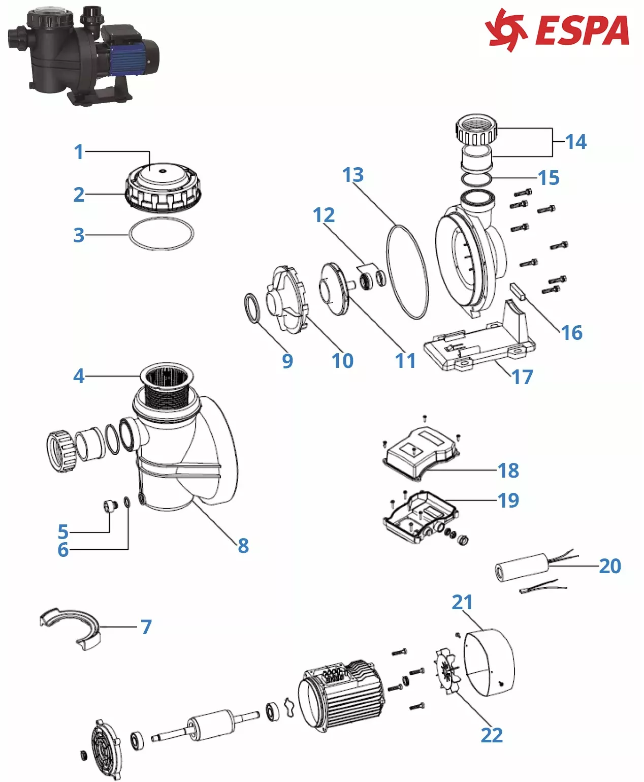 Peças sobressalentes Bomba ESPA Aquarama Iri