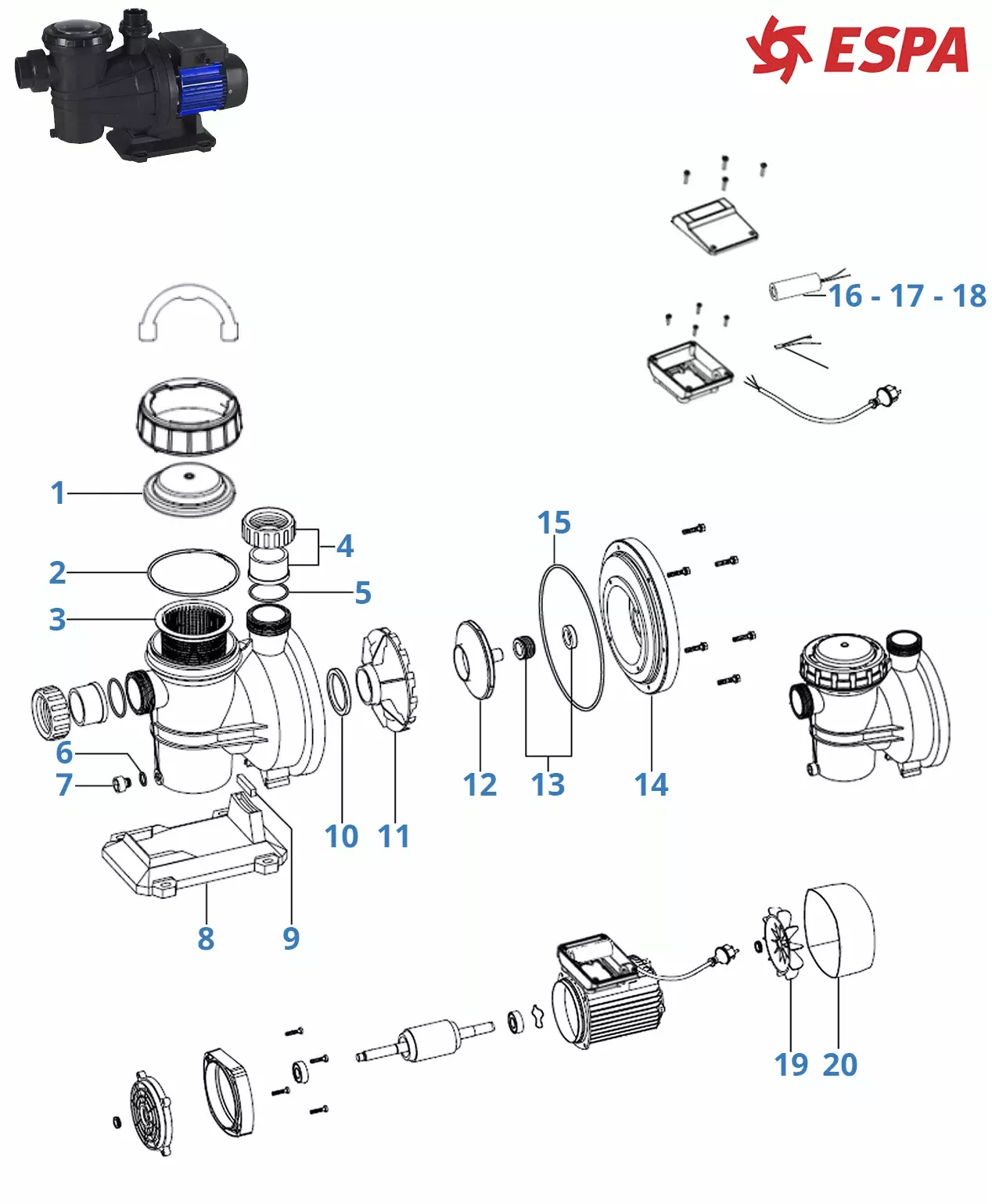 Peças sobressalentes para bombas de piscina Espa