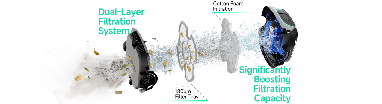 Equipado com um sistema avançado que capta e retém partículas de diferentes tamanhos, garantindo uma piscina limpa e cristalina.