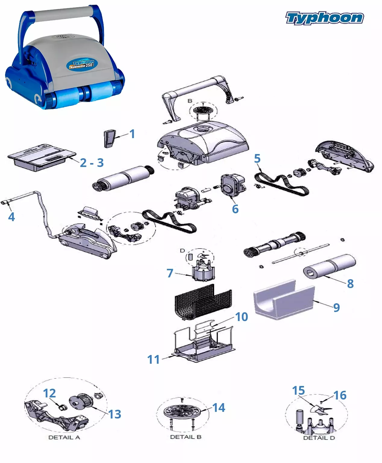 Peças de substituição para aspiradores de piscinas Typhoon