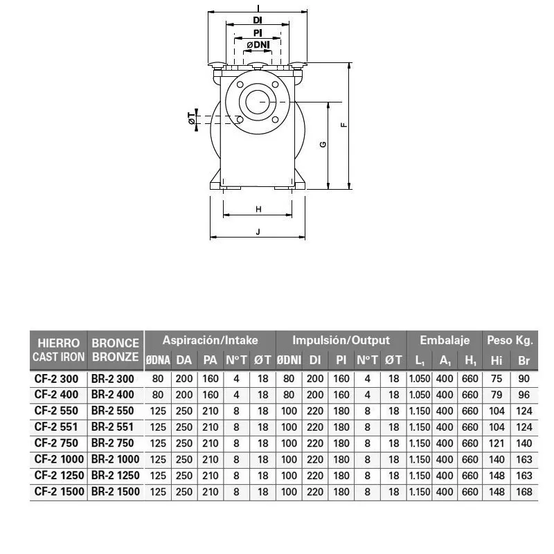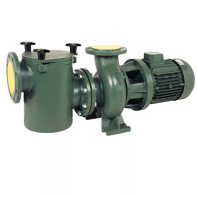 Bomba centrífuga de grande caudal fabricada em ferro fundido, com pré-filtro na aspiração, o que a torna a bomba ideal para grandes equipamentos de filtração.