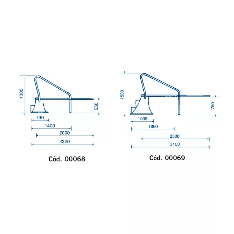 As alavancas de salto são em resina de poliéster e fibra de vidro. Toda a gama se destaca pela sua robustez - suporta um peso máximo de 120 kg -, pela sua grande resistência mecânica e resistência aos raios UV do sol, bem como aos agentes atmosféricos, o que garante uma longa duração mantendo a estética visual.