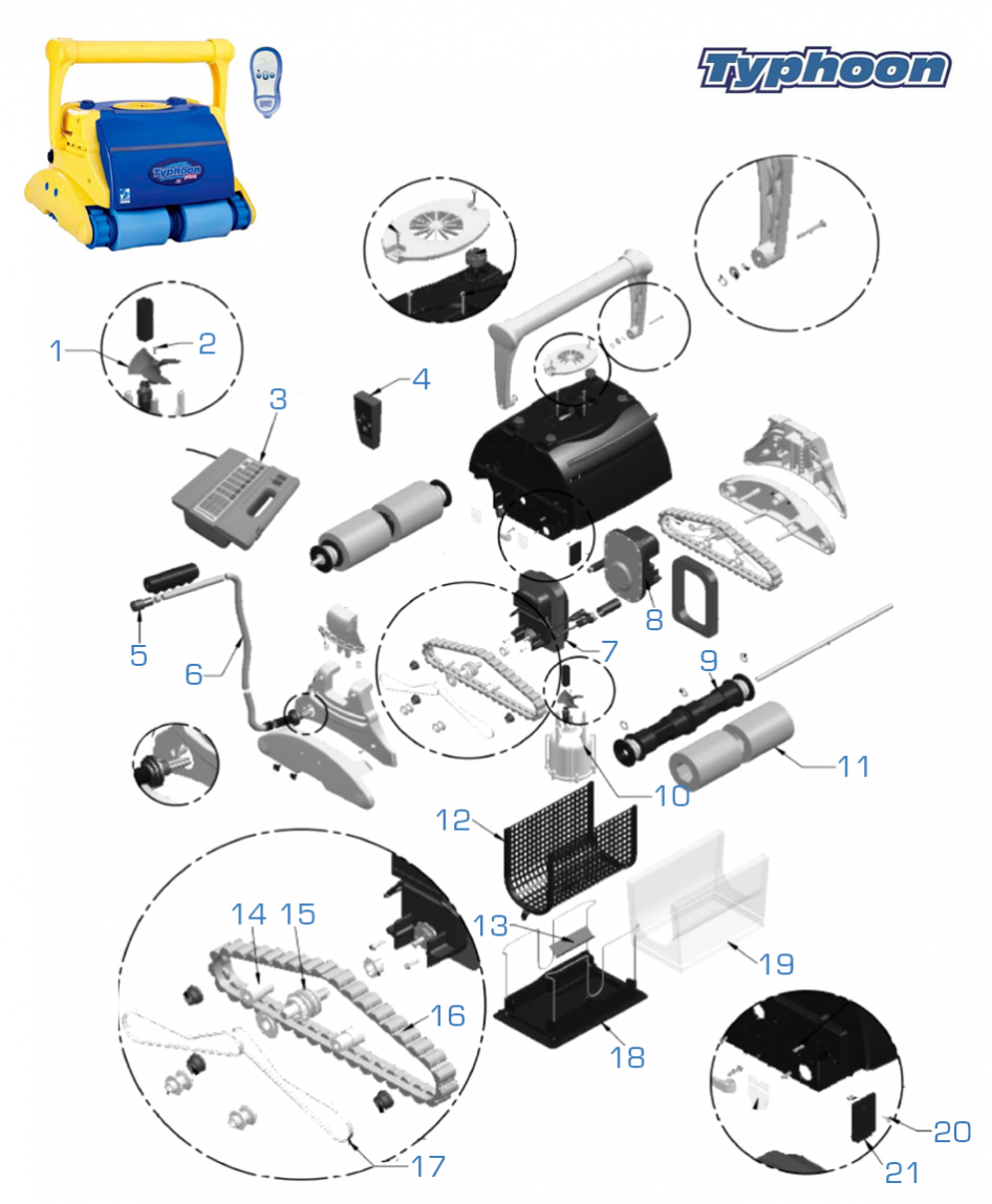 Peças de substituição para aspiradores de piscinas Typhoon