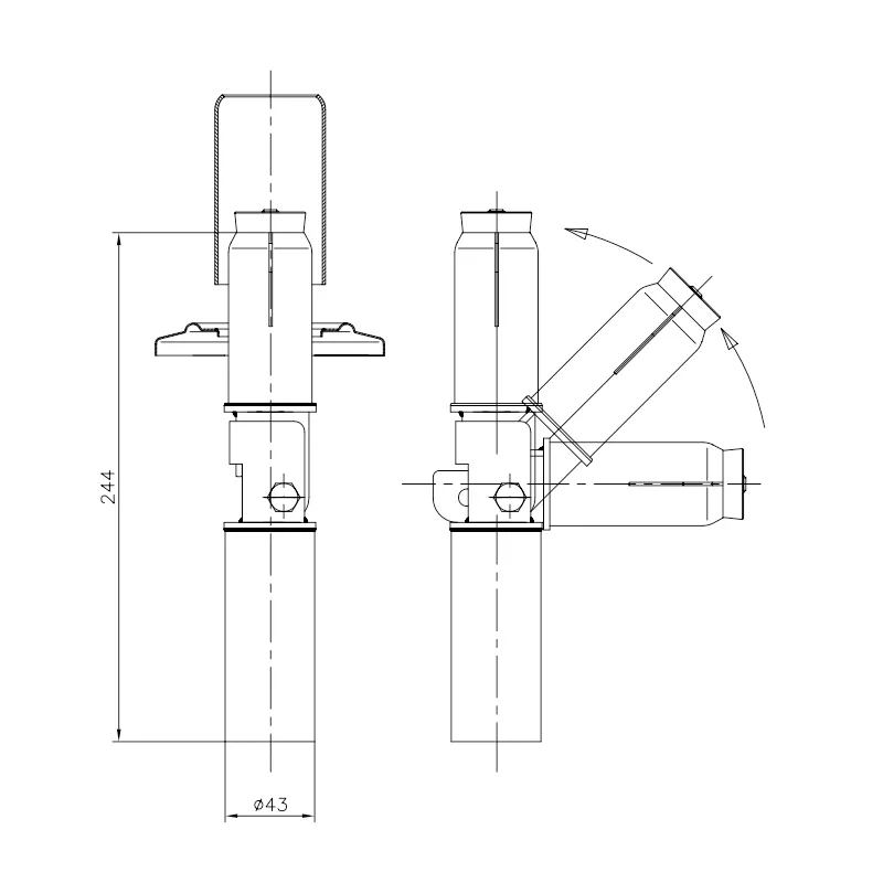 - Ancoragem articulada em aço inoxidável 18/8 (AISI-304) para escada, tubo Ø43 mm.