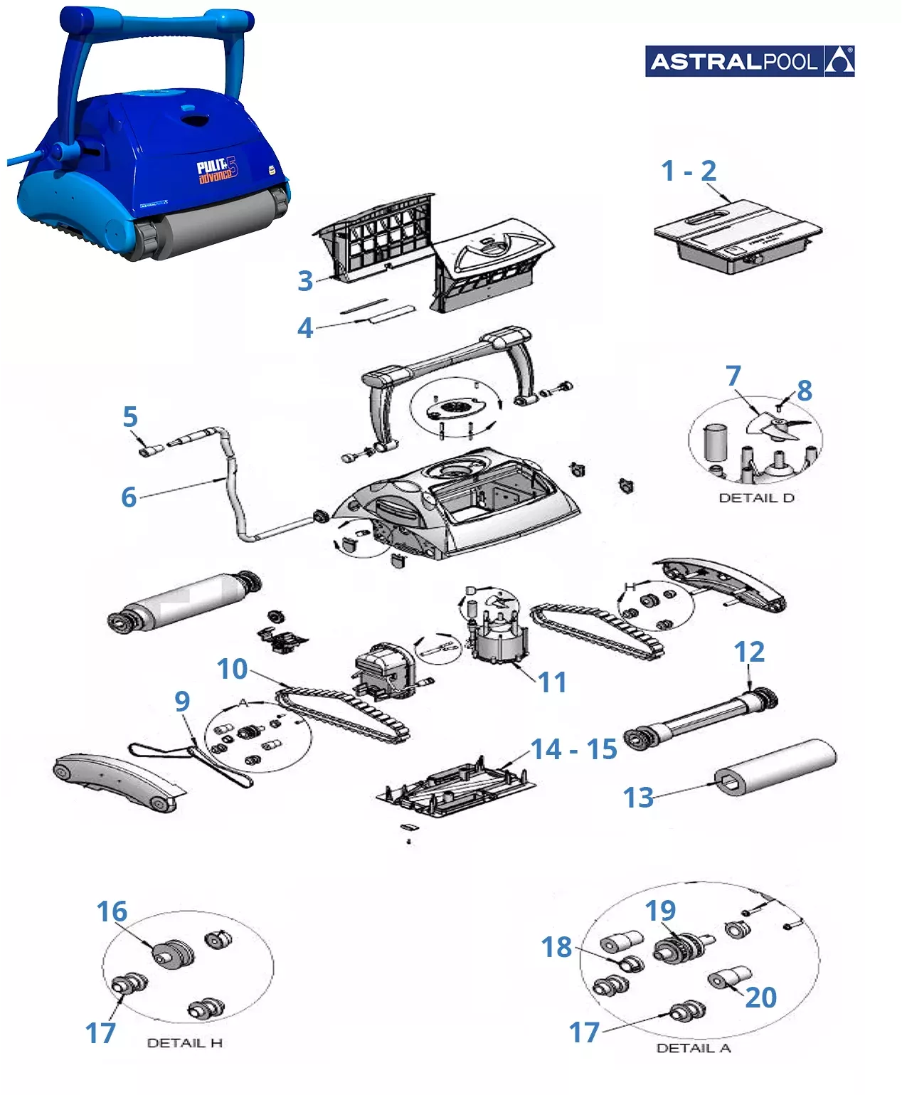 Peças de substituição para aspirador de piscinas Aquatron Filtro fino Pulit Advance