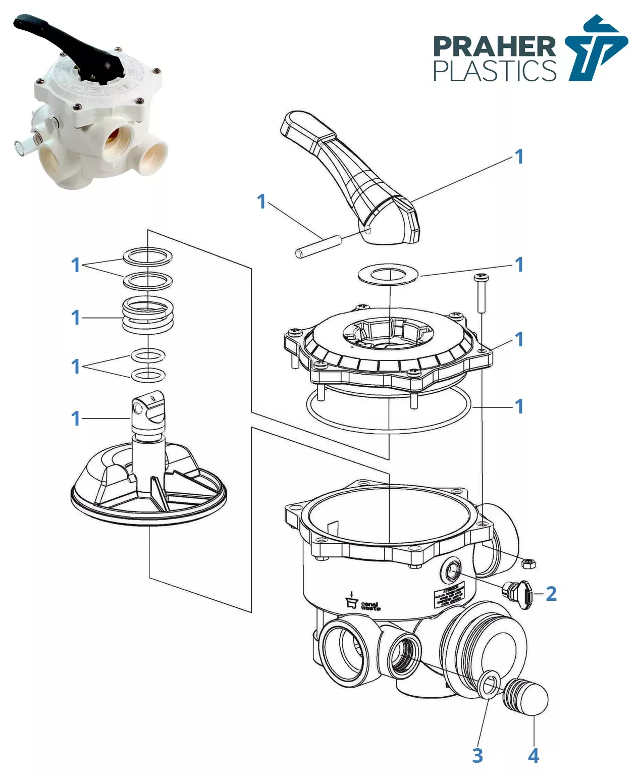 Válvula selectora de peças sobressalentes Praher válvula selectora lateral 1" 1/2
