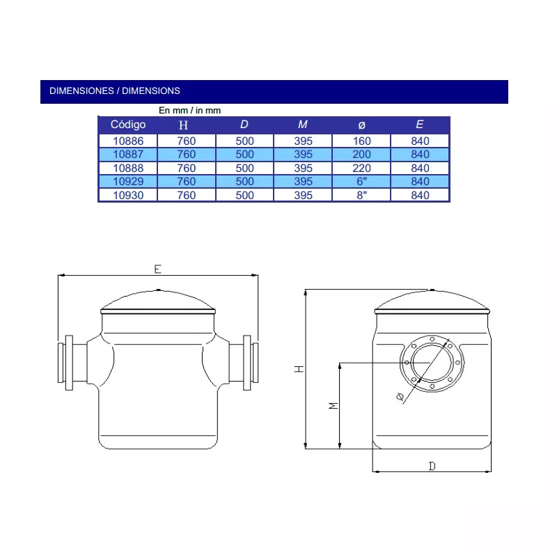 - Diâmetro do orifício da malha do pré-filtro: Ø 4,9 mm
