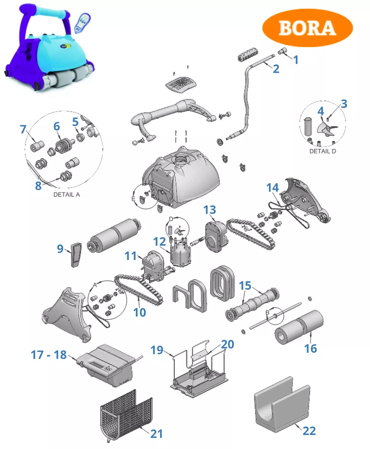 Peças de substituição para aspiradores de piscinas Bora